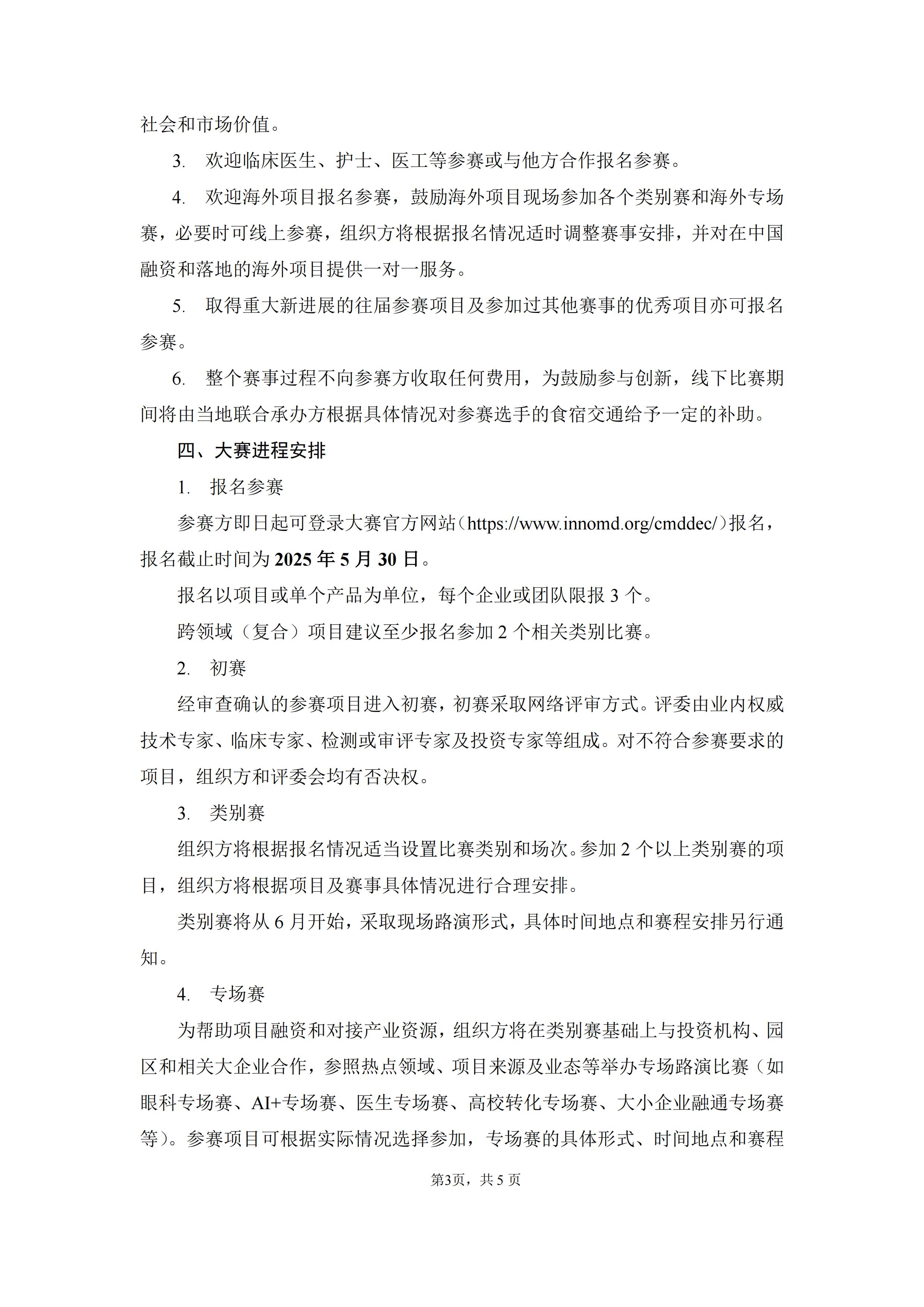 参赛方即日起可登录大赛官方网站(医疗器械创新网网://hbbomao.com/cmddec/)报名,报名截止时间为2025年5月30日。